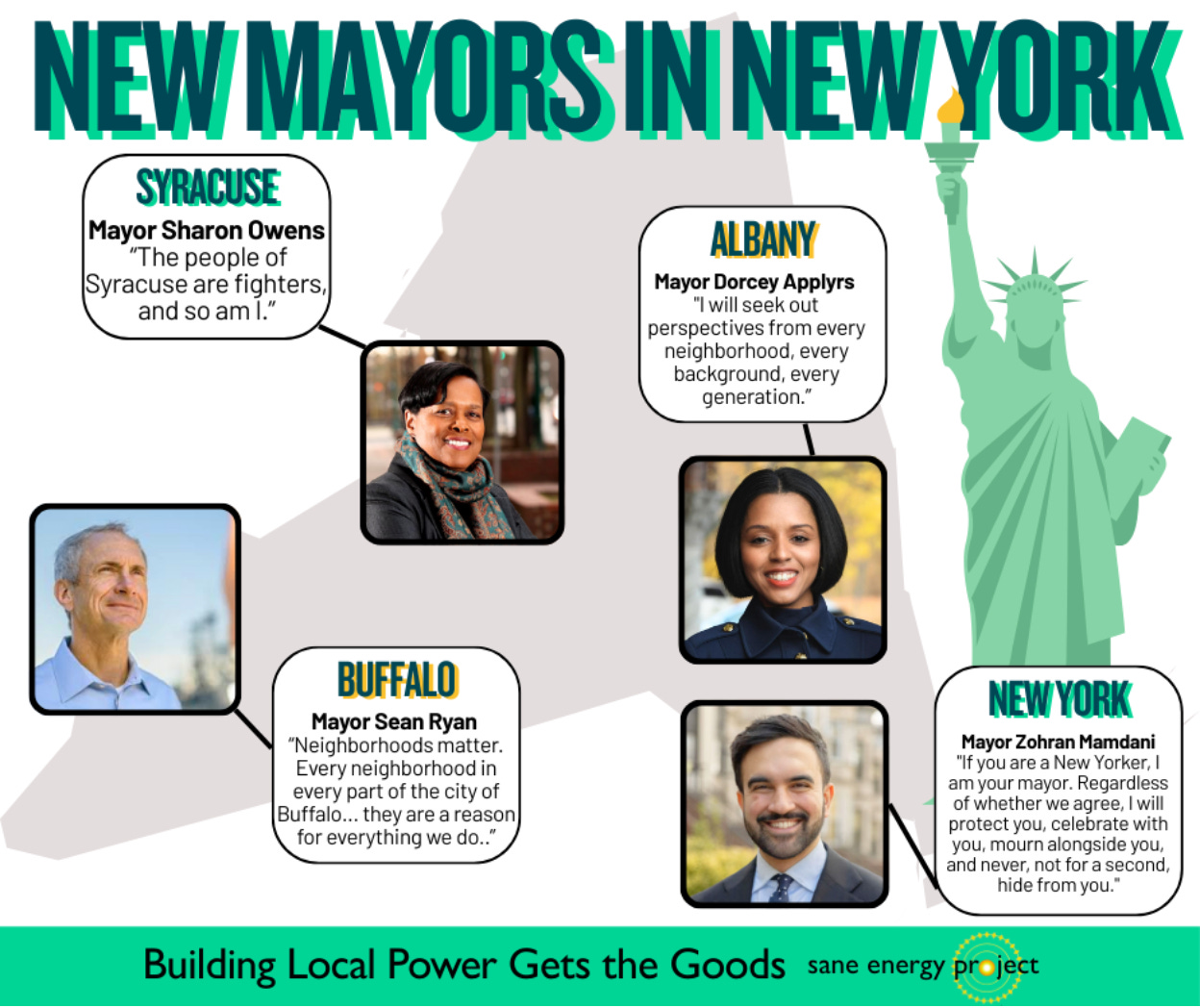 We also congratulate the incoming mayors of Buffalo, Syracuse, and Albany, progressive leaders committed to delivering for the people of their cities and to building local power across New York State.