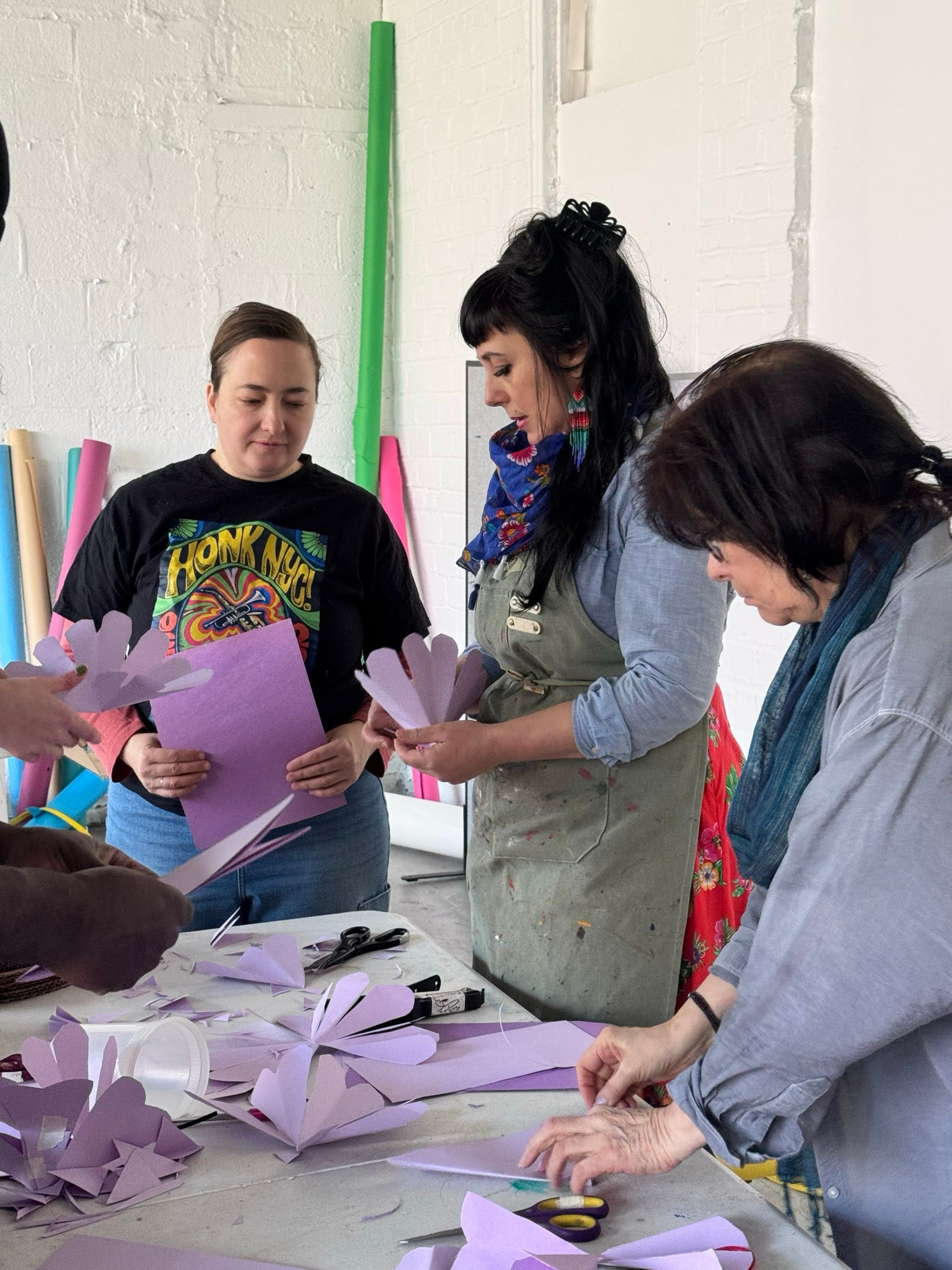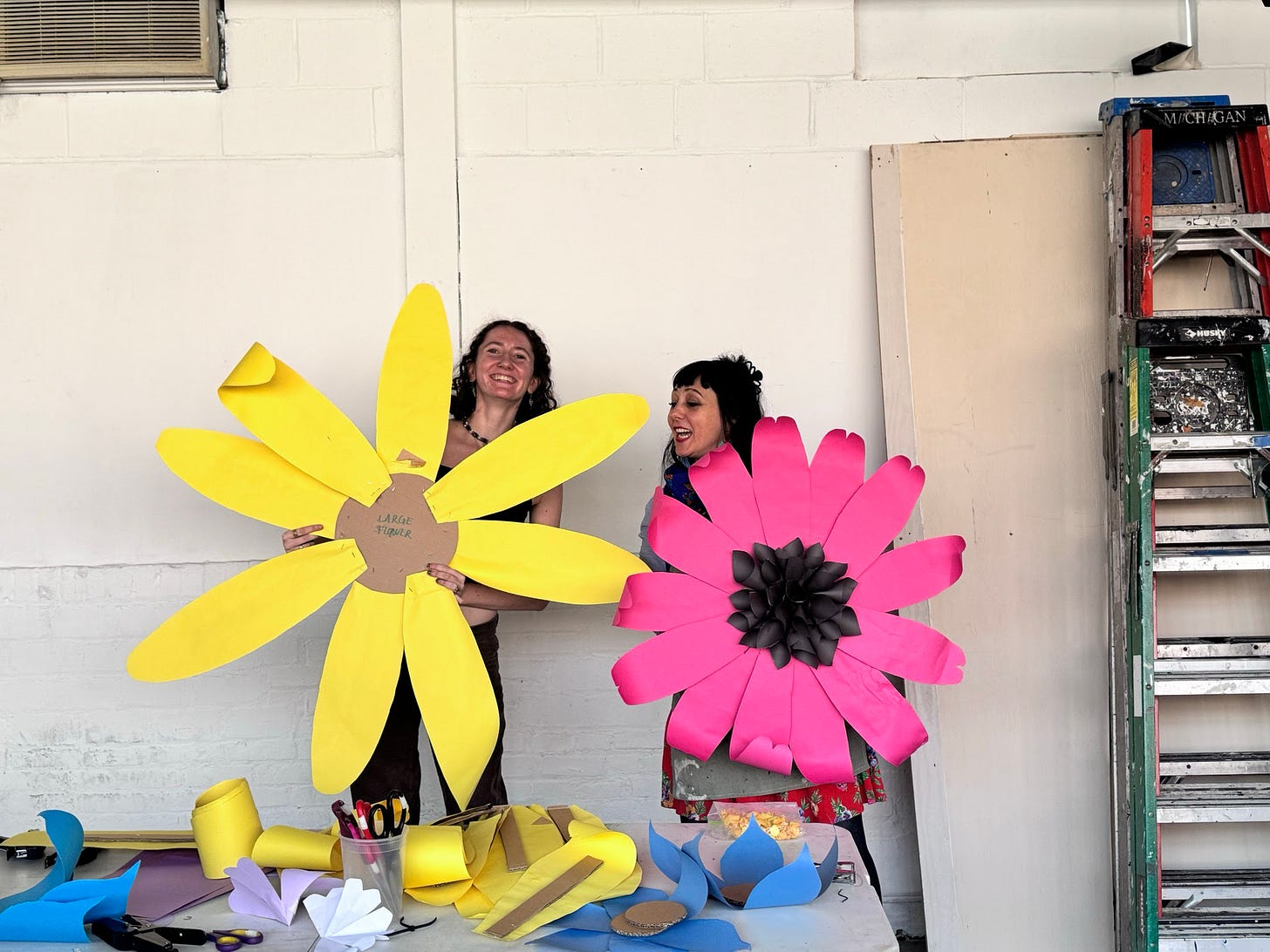 After an eventful week of organizing and protesting in Albany to defend New York’s climate law (the CLCPA), Sane Energy Project took the time to gather and use our creativity to support the movement. In collaboration with our friends The Boxcutter Collective, we held an art build yesterday to work on the gorgeous flowers that represent the native plants that could rehabilitate the toxic land where National Grid’s LNG facility currently stands. The art will be used on walking tours of the site to educate about the fossil fuel infrastructure in our neighborhoods and inspire us to imagine what generative life could be there instead. If you couldn’t make the art build, you can see the art by joining us on a very special walking tour in April…