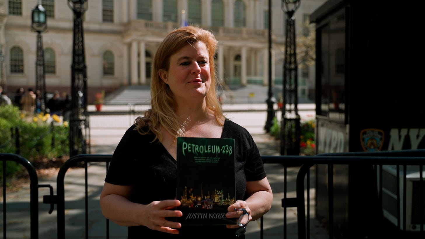 “The publication of Petroleum-238 this week is both timely and poignant, as we witness the New York State Governor and Assembly's appalling inaction on the critical climate legislation, the NY HEAT Act, due to fossil fuel industry disinformation and donations to strategic legislators to prevent climate progress. Our connection with Justin Nobel dates back to 2011 when our shared concern over radon in gas brought us together in the fight against the Spectra pipeline, the first high-pressure fracked gas pipeline brought into NYC from the Marcellus shale fracking boom. At this time, Sane Energy organized against former Mayor Bloomberg's insistence that the city convert all boilers from oil to gas rather than renewables to fill his billionaire pockets. Now, we see how the last decade of the gas industry has destroyed people's lives, and harmed our labor force. More than ever, it is crucial to move everyone off a toxic energy system by bolstering Energy Efficiency and Thermal Energy Networks.” -Kim Fraczek, Director of Sane Energy Project